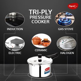 Pigeon Elite Shine 2 Litre Tri-Ply Body Outer Lid Pressure Cooker Induction and Gas Stove Compatible (Stainless Steel, Silver)