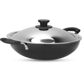 Nelkon Stainless Steel Flat Kadhai or Shallow Kadhai is made up of SS304 Premium Food Grade stainless steel for Safe and Healthy cooking. Heavy Guage Impact-Bonded Triply encapsulated bottom ensures quick uniform heating and eliminates hot spots. It is a multi purpose Stainless Steel Cookware designed to cook your favourite food with love and ease. This pot serves well for preparing stocks, soups, stews, pastas as well as used as deep fryers.
